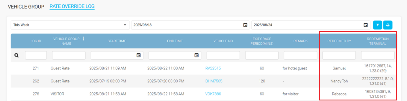 We’ve added two new columns in the Rate Override Log for improved traceability: