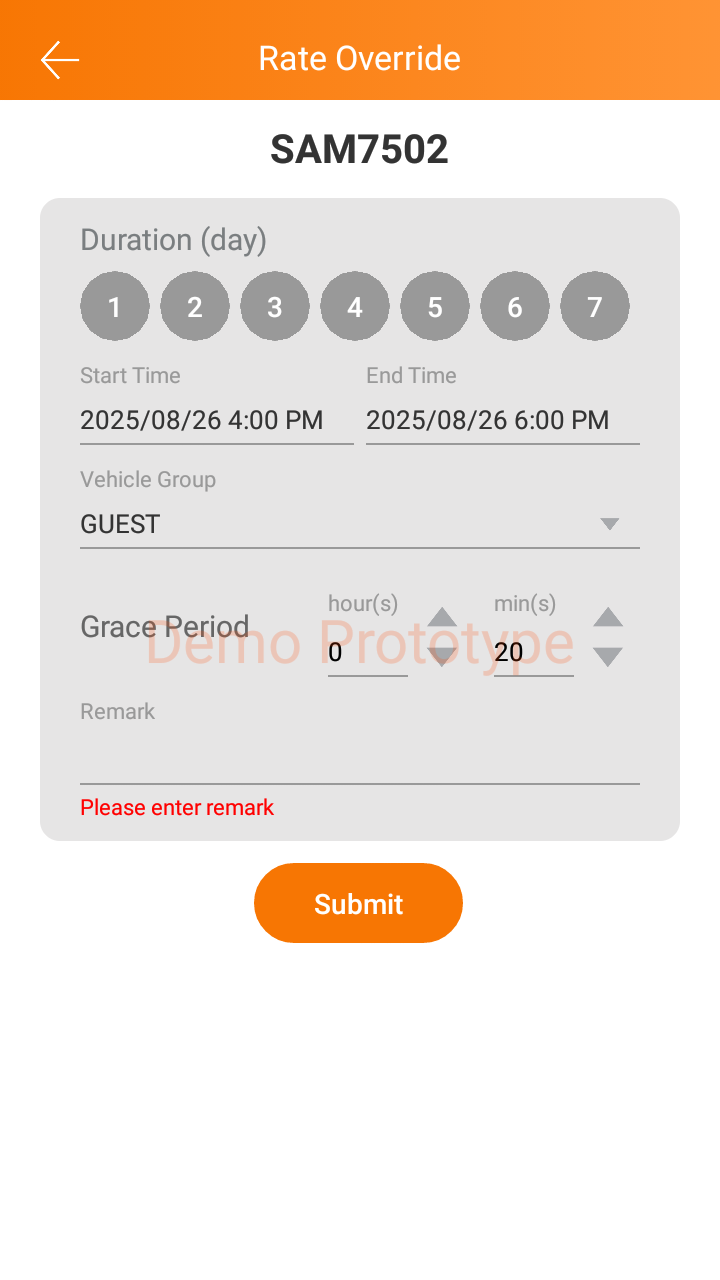When "Require Remark on Rate Override" is enabled in the web settings, users must enter a remark.