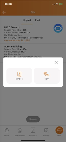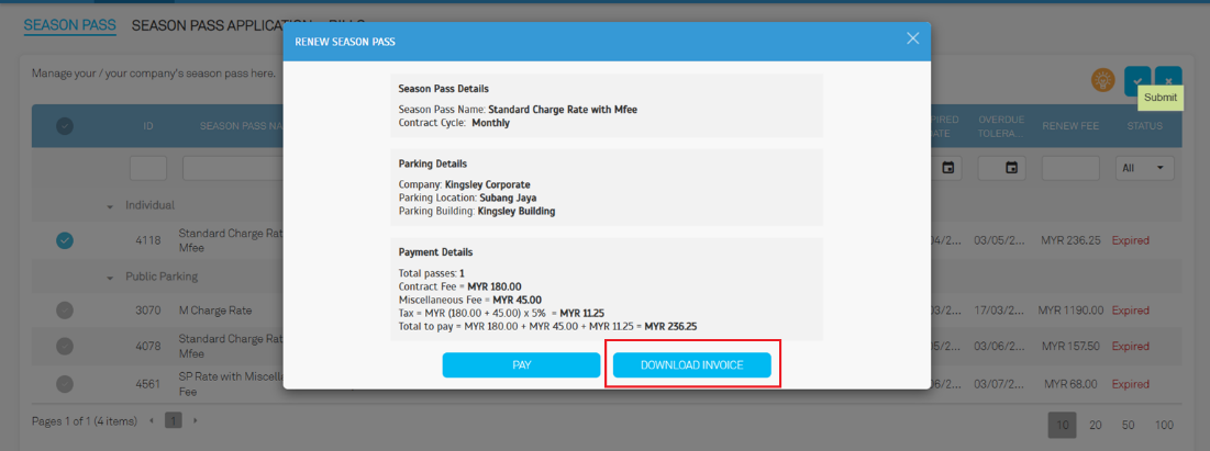 Users can download the Proforma Invoice right after selecting the pass(es) for renewal.