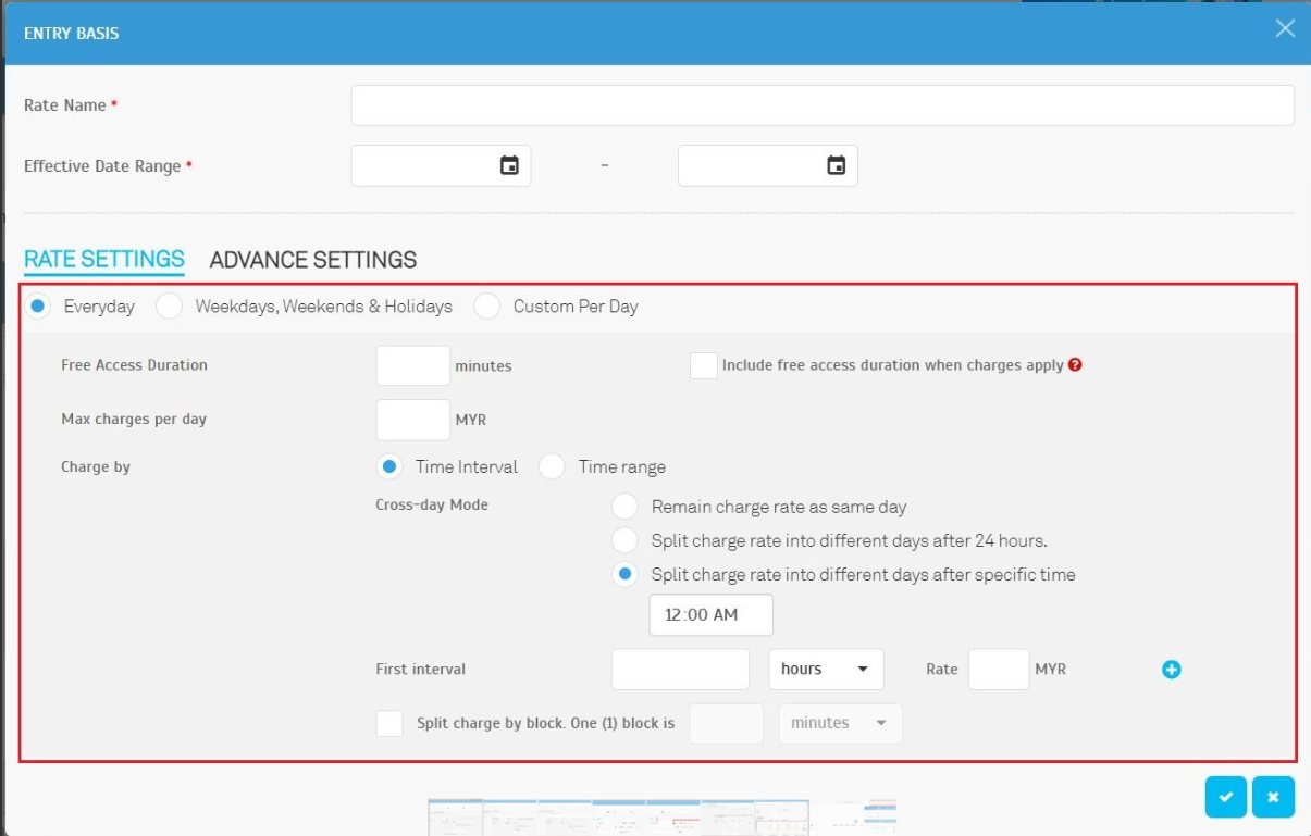 Found at: Parking Rule > Charge Rates > Entry Basis > Advanced Settings