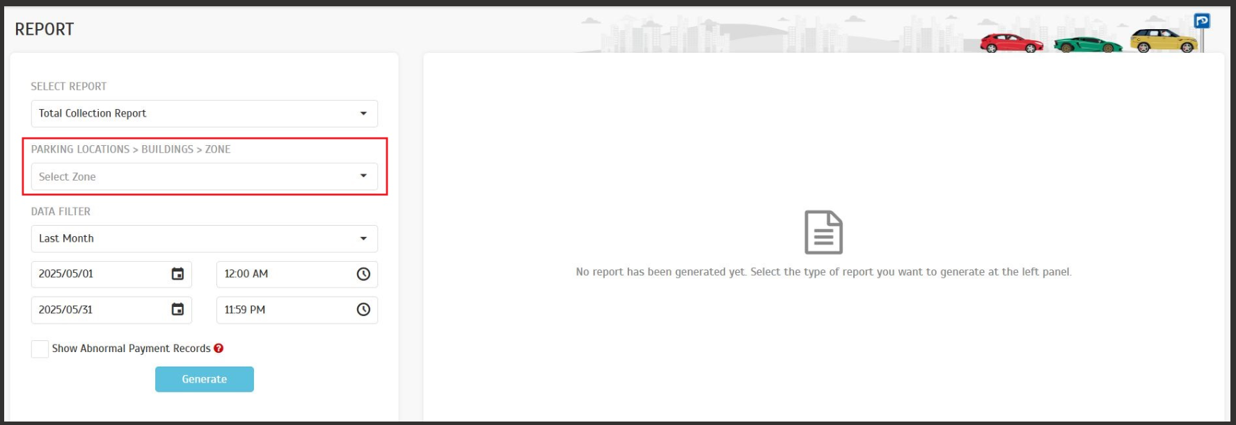 4. New Zone Filter for Total Collection Report (Requested by Mahsa)