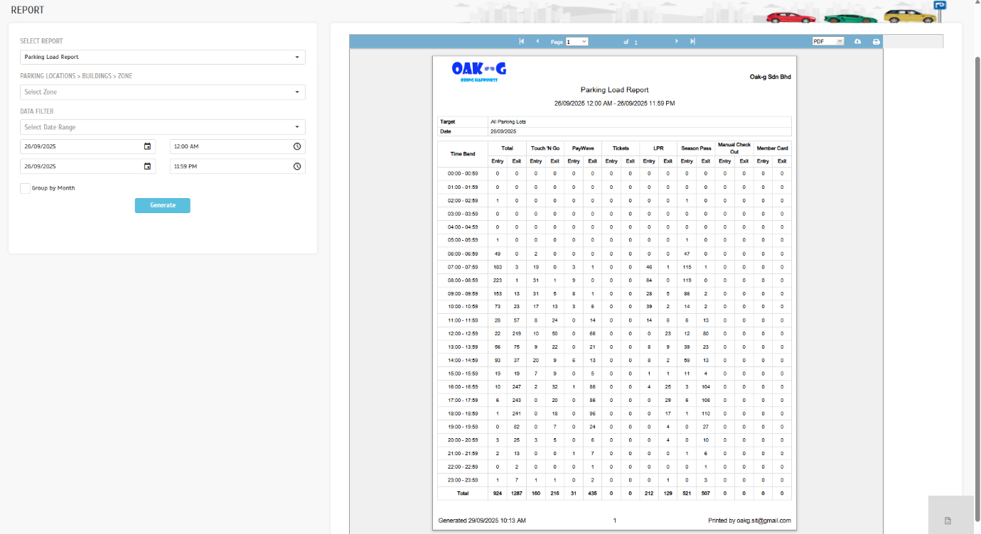 2.1. Operator View: Report > Analysis > Parking Load Report