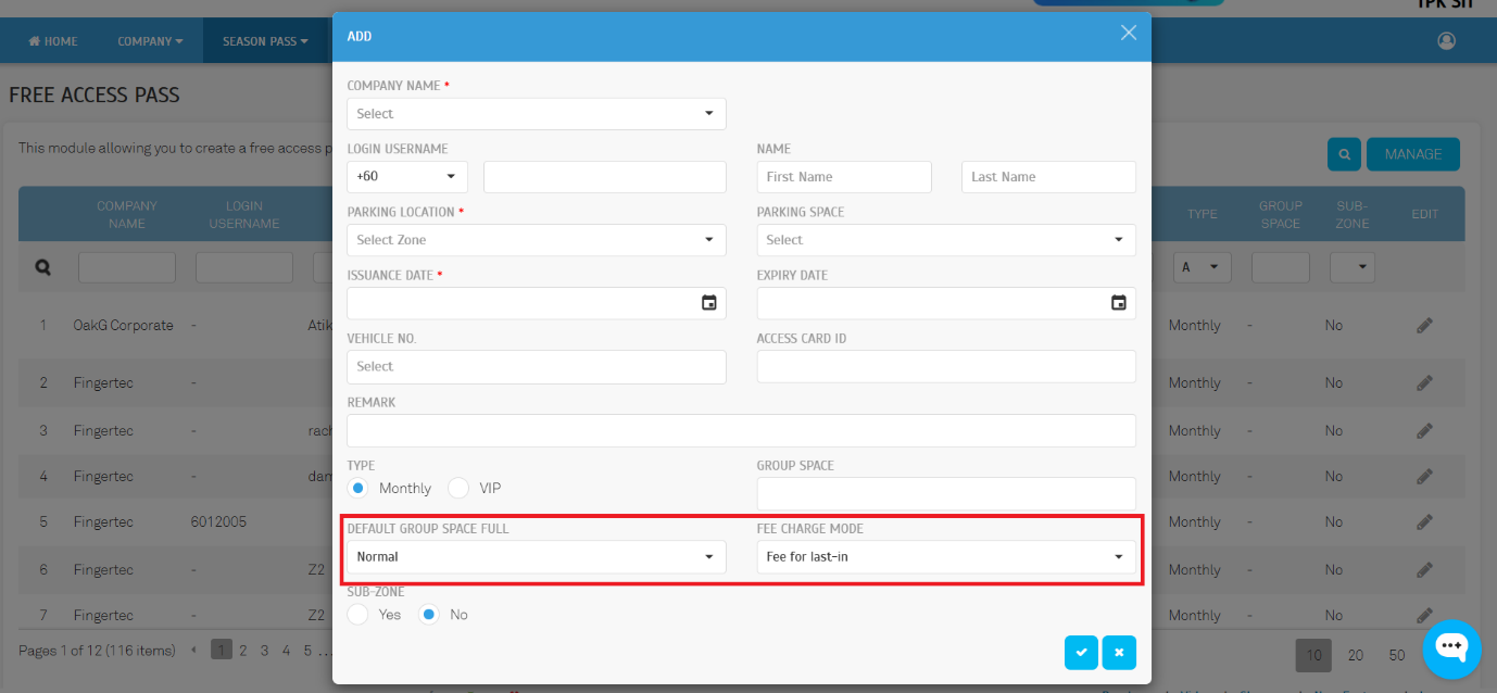 - Configuration Retention - When creating new free passes (manual entry or Excel import), system settings such as Default Group Space Full and Fee Charge Mode are now correctly saved and applied.
